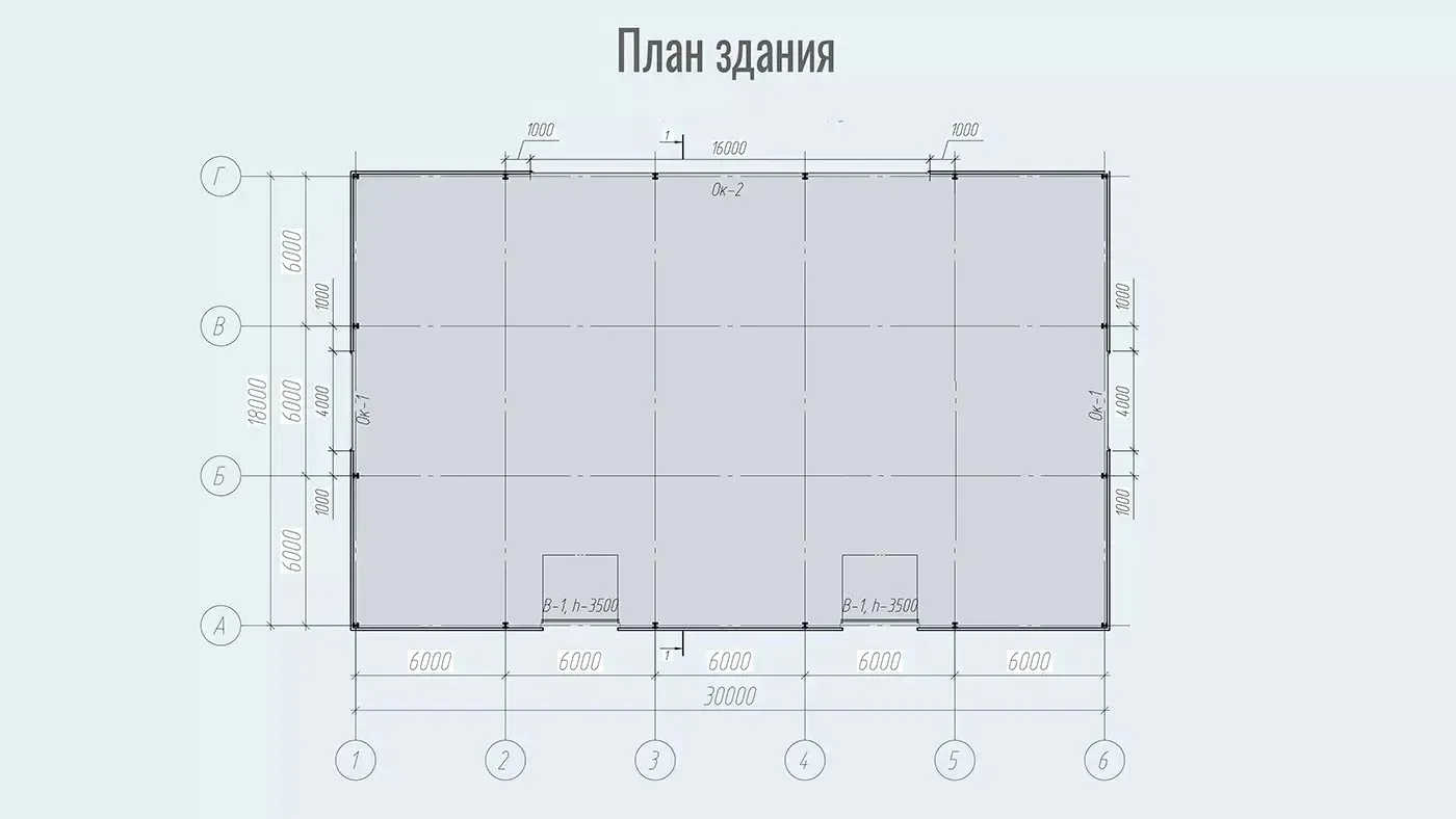 Габариты сооружения — 18 метров в ширину, 30 метров в длину и 7 метров в высоту — обеспечивают полезную площадь в 540 кв. м. Каркас выполнен из стальных профилей с антикоррозийным покрытием, кровля и стены могут быть реализованы как в облегчённом сэндвич‑панельном варианте, так и с использованием профлиста. Шаг колонн подобран для оптимального баланса жёсткости и экономичности.